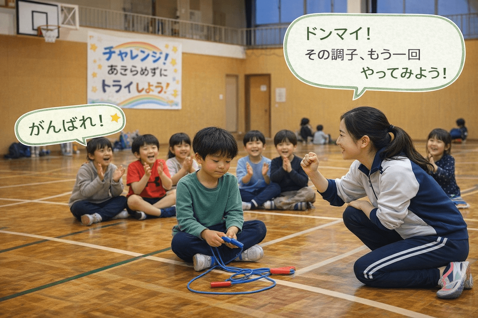 大縄跳びは、ただ跳ぶだけの運動ではありません。仲間と呼吸を合わせることで、心の成長を促します。 -