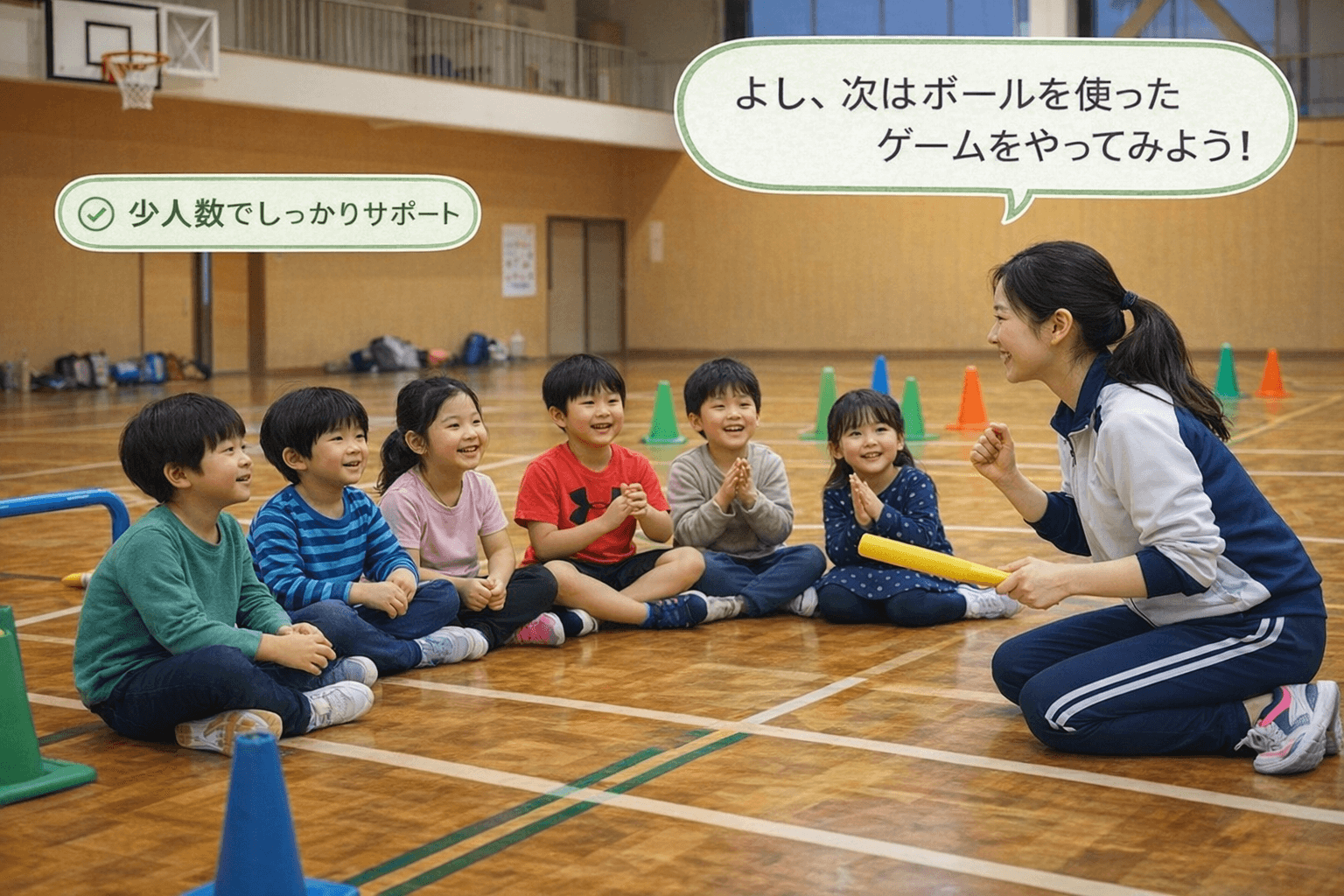 - はい、大丈夫です。スポトレ体育教室では、運動の得意・不得意に関係なく、一人ひとりのペースに合わせて指導します。運動が苦手なお子さまこそ、安心してご参加ください。