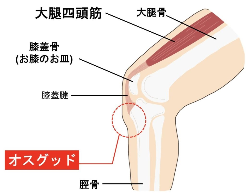 スポーツ障害の一例で、オスグッド(ジャンパー膝)で痛みを抱える小学生が多いです。